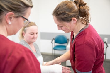 Unsere Medizinischen Fachangestellten unterstützen unsere Ärzte bei der Diagnostik und Therapie unserer Patienten. Sie führen unter anderem Blutentnahmen, das Röntgen, die Vorbereitung bei den ambulanten Operationen durch und kümmern sich um die Vor- und Nachsorge unserer Patienten.